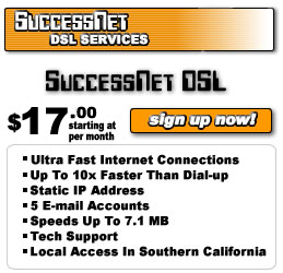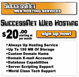 SuccessNet Dial-up SuccessNet Dial-up SuccessNet Web Hosting SuccessNet Web Hosting Internet Advertising Virus Removal Computer Consulting UNIX Networking Computer Repair Database Development Custom Programming Web Development E-Commerce Solutions Flash Design SuccessNet Services SuccessNet DSL SuccessNet DSL